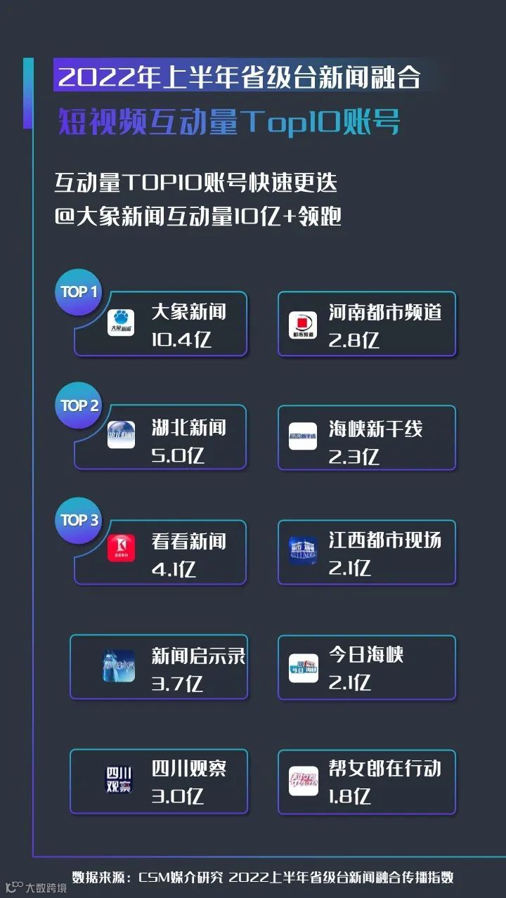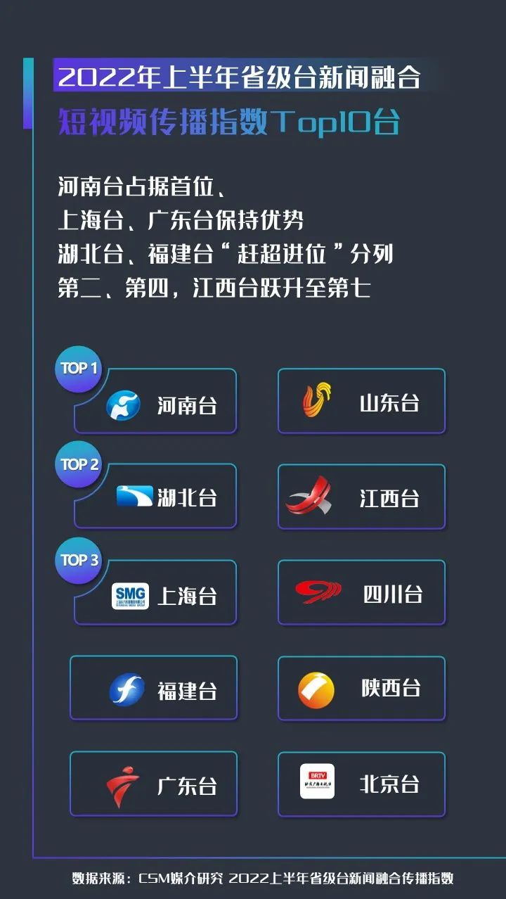 河南台占据新闻短视频传播指数首位、上海台和广东台保持头部优势