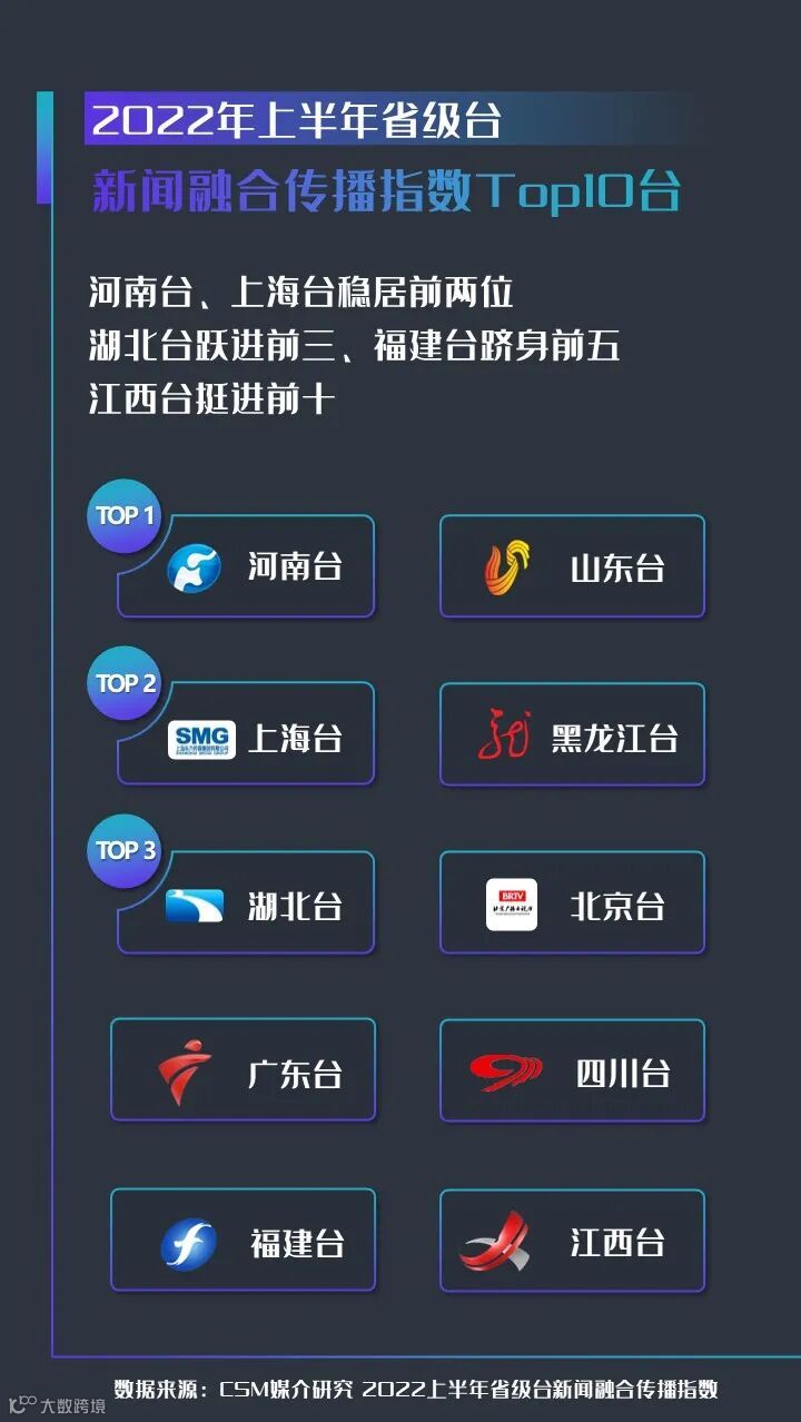 湖北台、福建台“赶超进位”分列第二、第四,江西台跃升至第七
