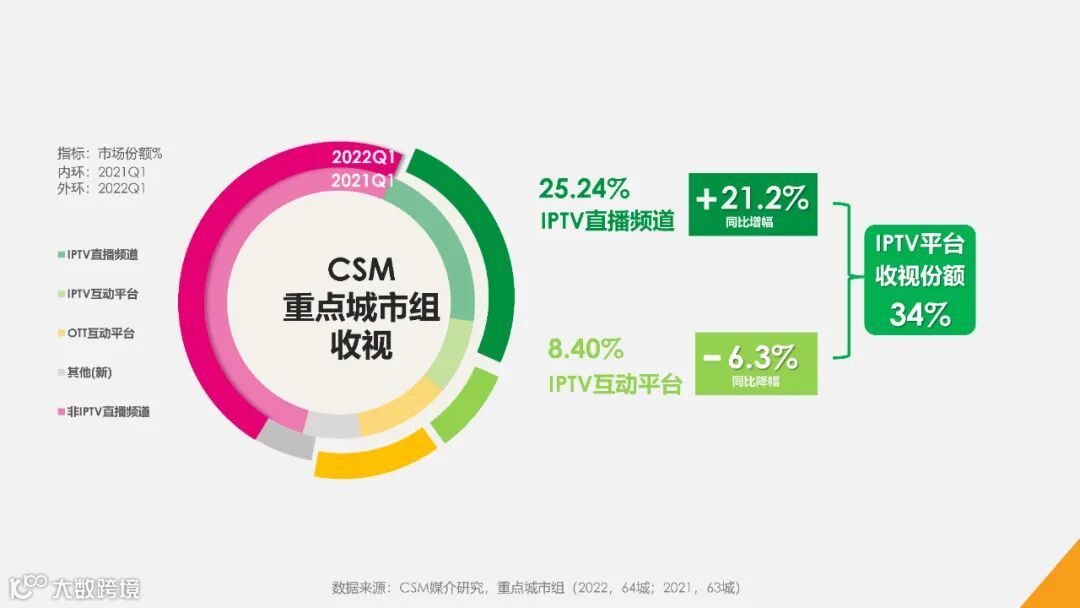 2022Q1 IPTV平台收视占据电视大屏34%的份额,