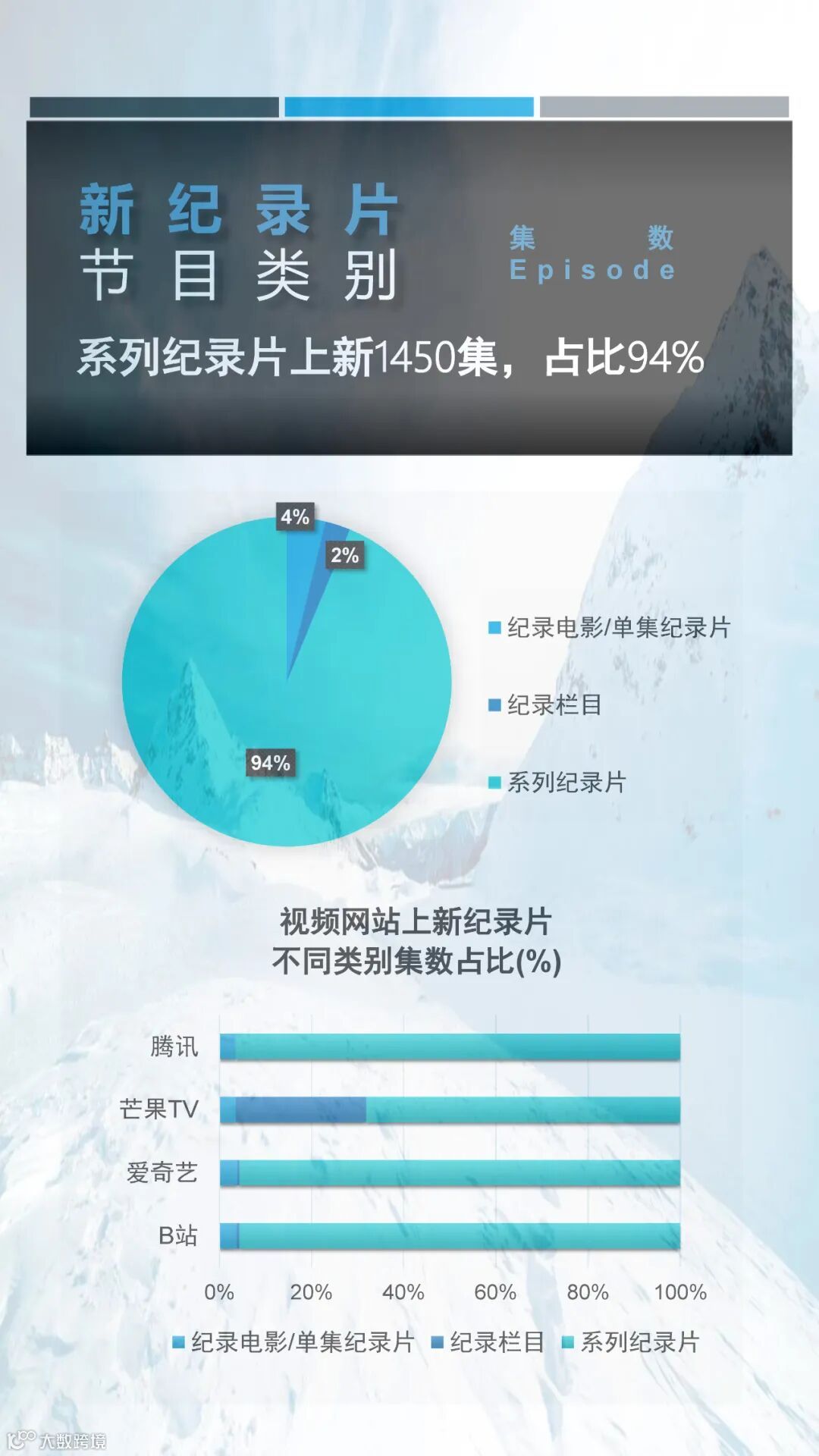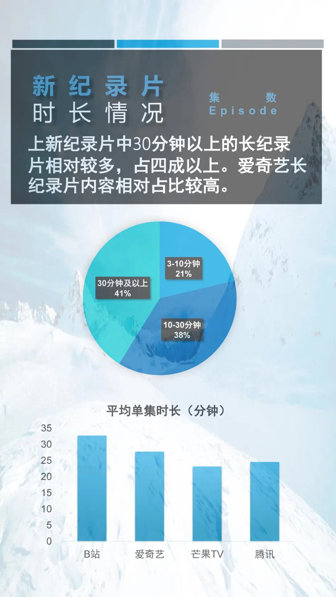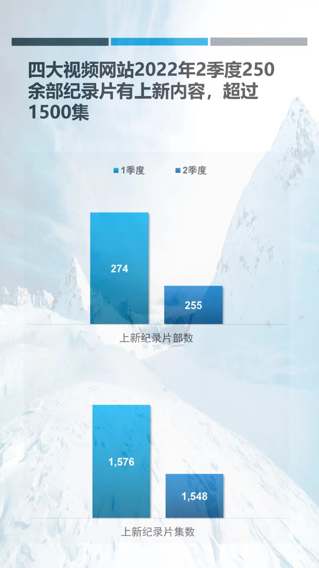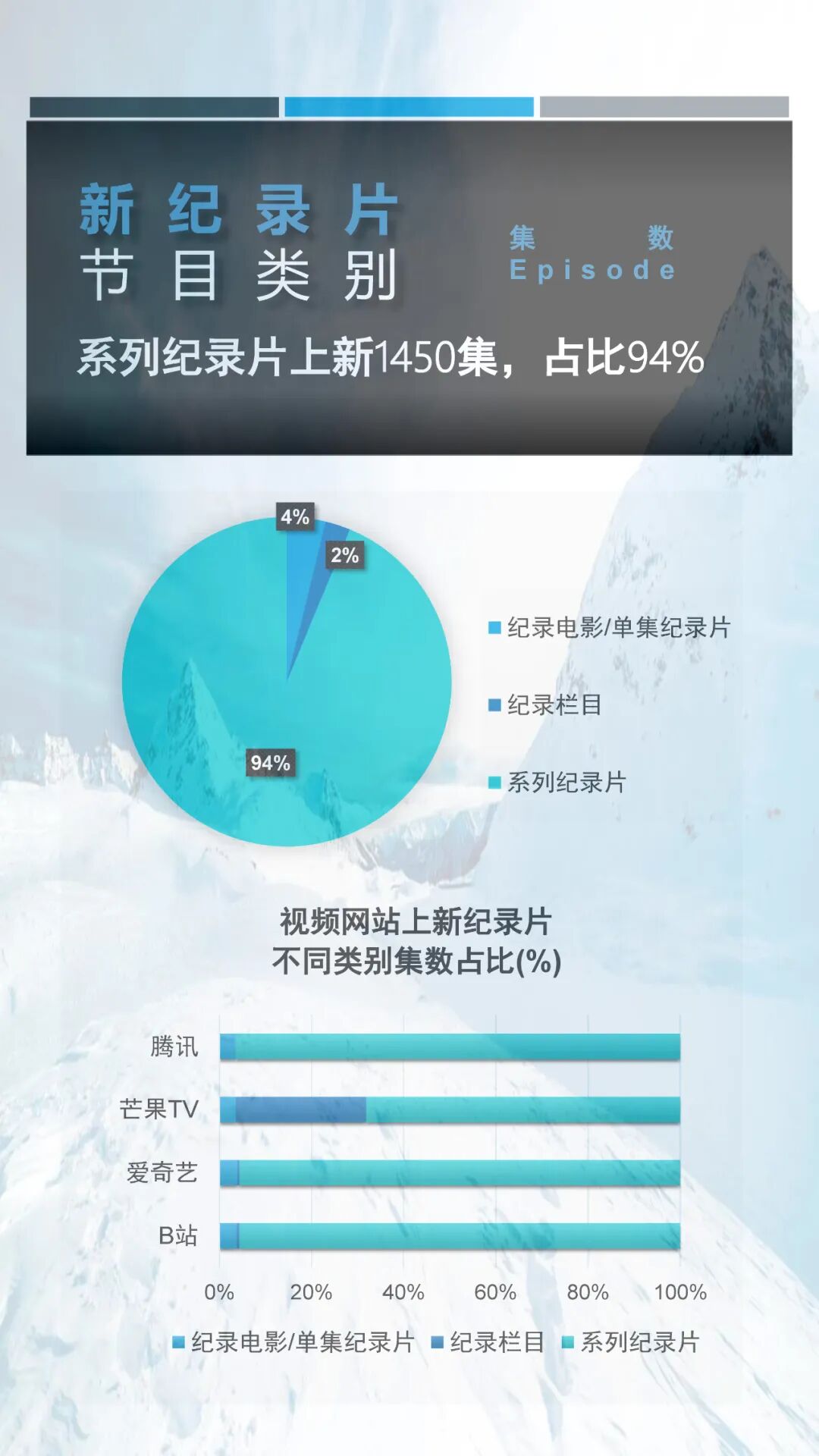 就内容而言,2022年第二季度网络新纪录片中人文类与自然类纪录片上新集数最多,占据二季度总上新集数的50%以上。而从平台的纪录片上新分布看来,不论是从上新纪录片总集数还是上新纪录片播放总时长,爱奇艺都遥遥领先于其它平台,这或许跟爱奇艺在纪录片运营上的剧场化策略有关。更多详细信息请参阅以下内容。