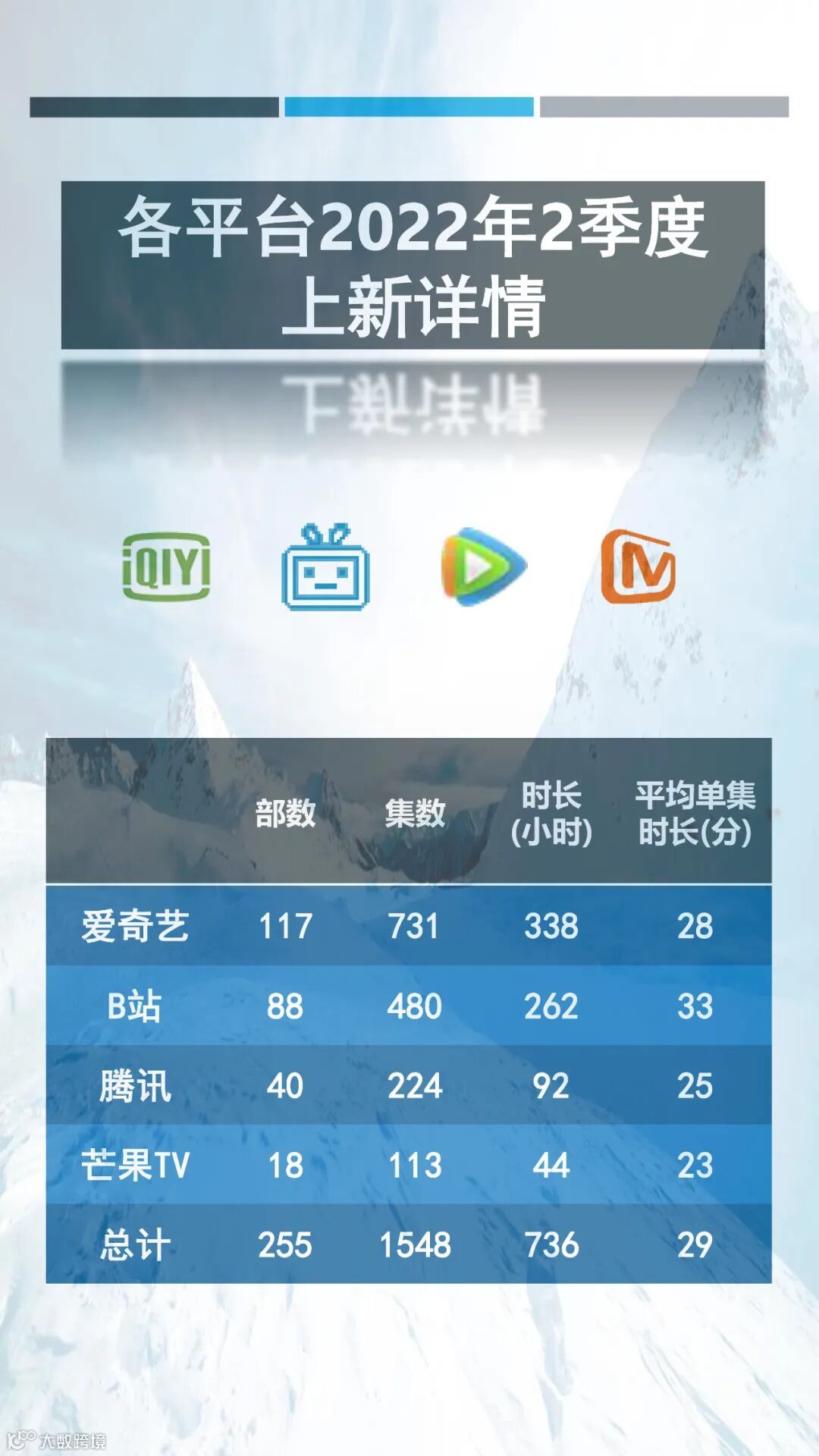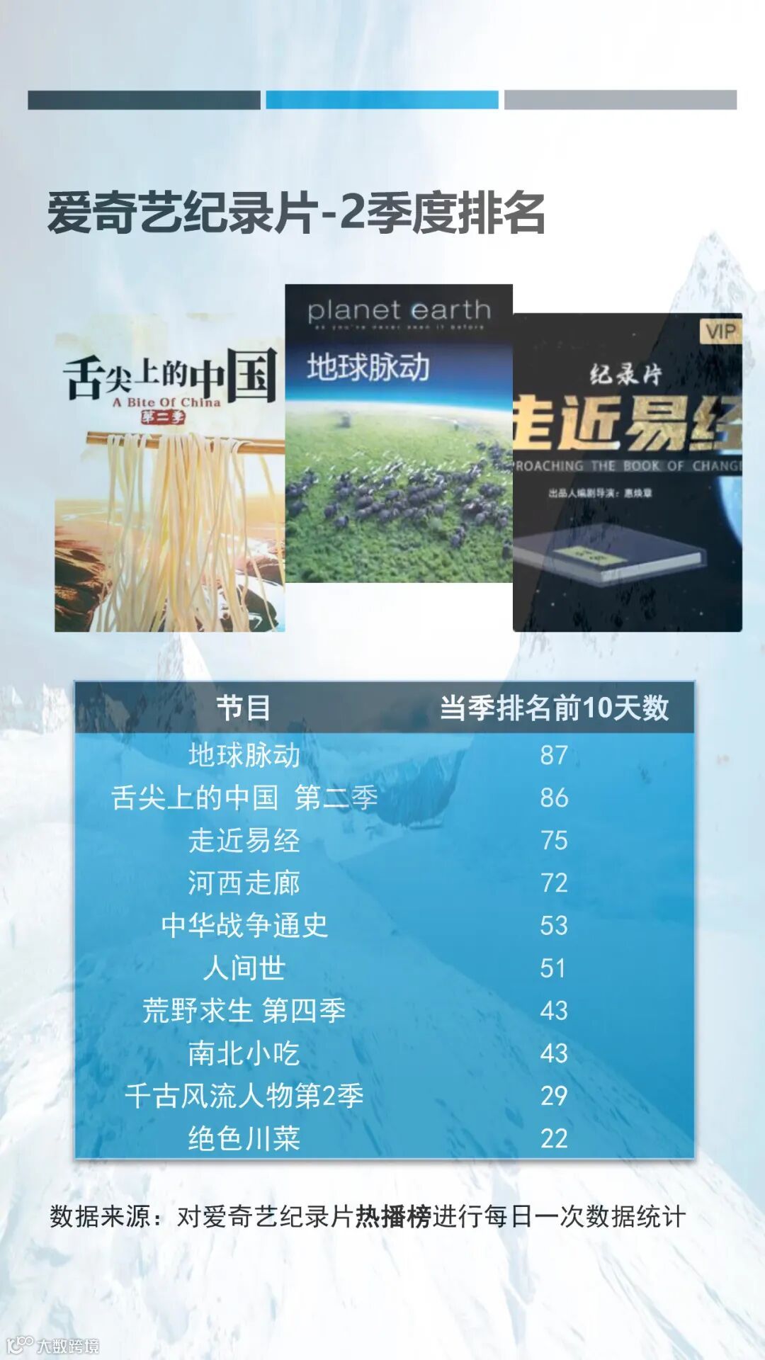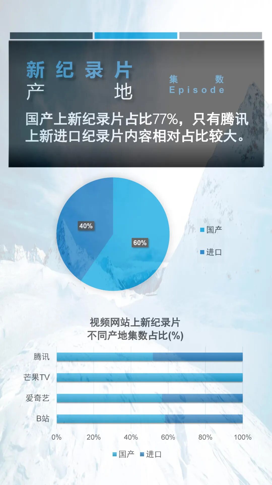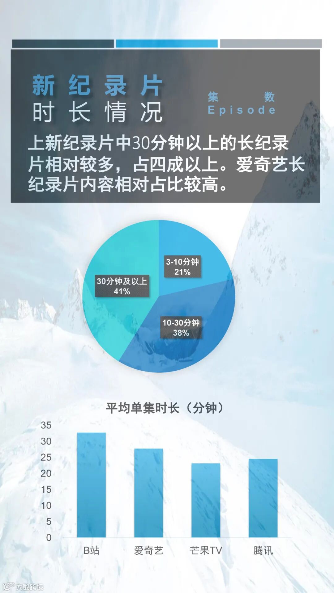 就内容而言,2022年第二季度网络新纪录片中人文类与自然类纪录片上新集数最多,占据二季度总上新集数的50%以上。而从平台的纪录片上新分布看来,不论是从上新纪录片总集数还是上新纪录片播放总时长,爱奇艺都遥遥领先于其它平台,这或许跟爱奇艺在纪录片运营上的剧场化策略有关。更多详细信息请参阅以下内容。