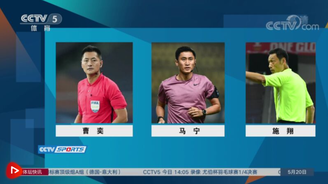 由左至右依次为中国裁判 曹奕、马宁、施翔