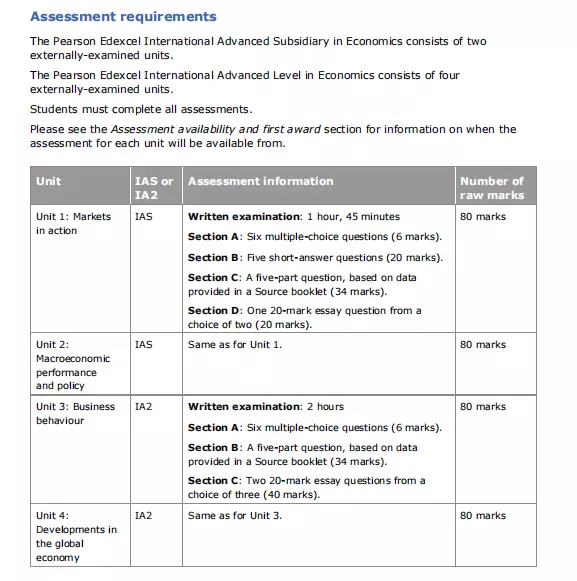 而Edexcel A-Level经济的考察形式则不一样,知识点分卷考察。其AS阶段同样是两张paper,其在unit2学习了宏观经济,那么paper2也只考宏观经济的内容,不涉及其他知识。