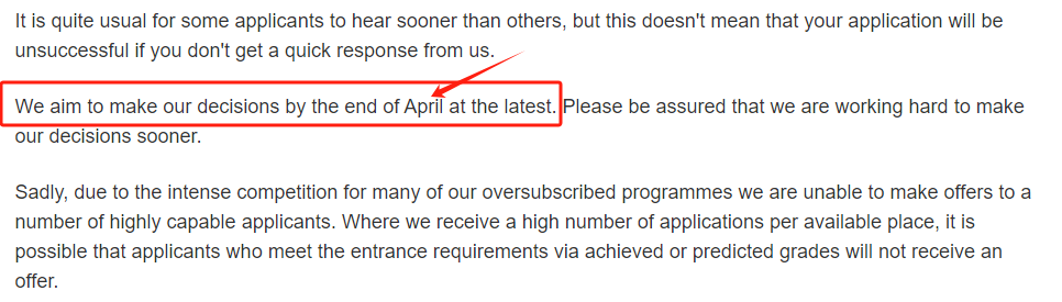 LSE申请截止日期为2024年1月31日,在此日期之前提交的申请都将于2024年5月16日之前做出决定。众所周知LSE放榜较晚,最晚5月份还在发offer。申请LSE的同学就更需要心平气和等待啦。