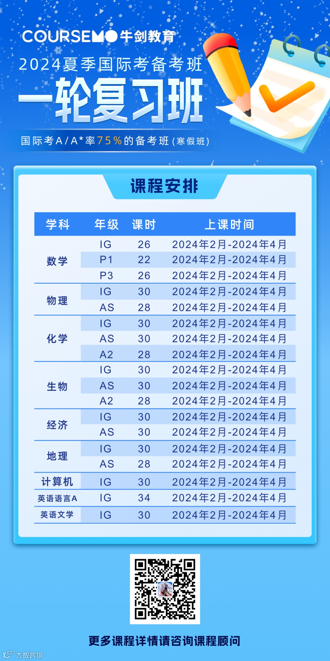 COURSEMO的一轮复习班已开启招生,让经验丰富的老师帮助你理清备考逻辑,夯实基础,攻克难点。每个班级名额有限,招满即止!咨询请戳小助手~