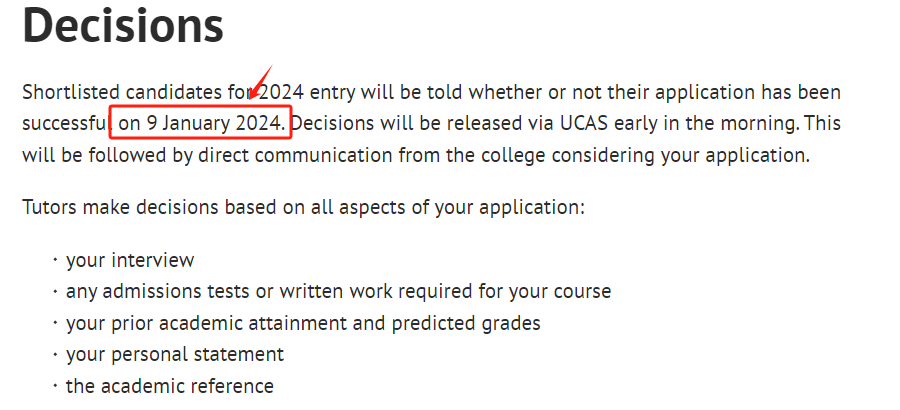 牛津大学放榜时间为2024年1月9日,官方会根据你的面试/学术成绩/入学考试/个人陈述/学术表现等评估你的申请结果。