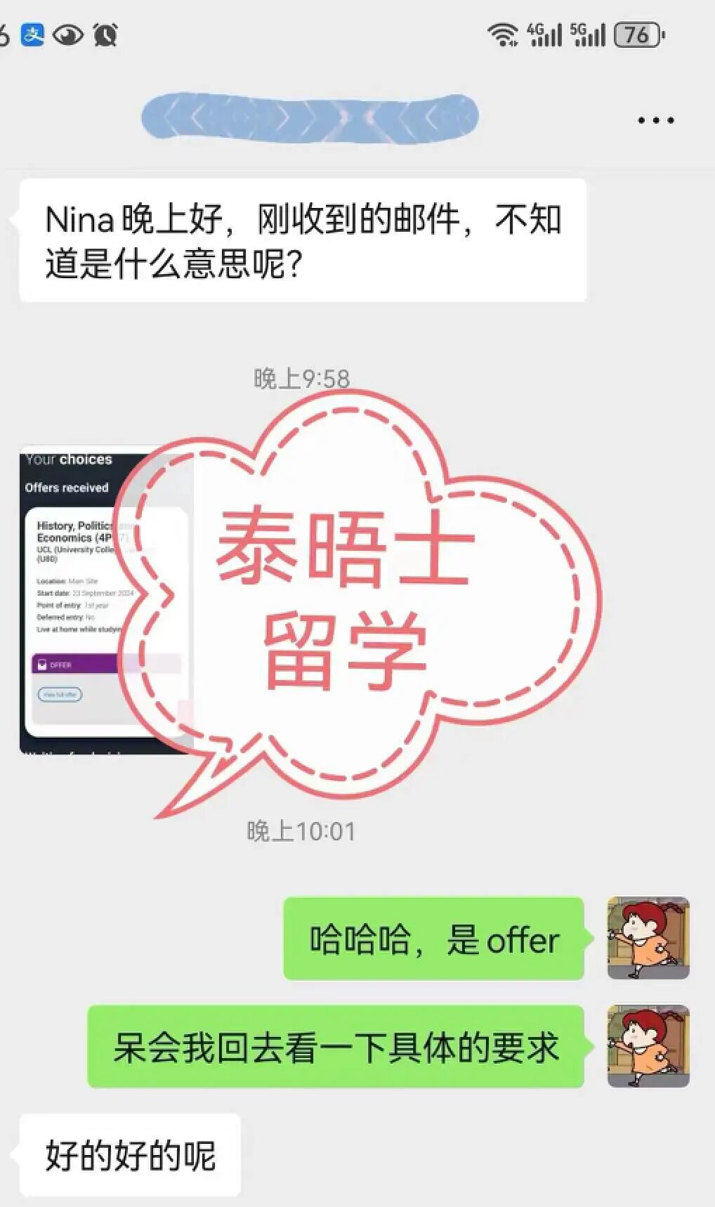 牛津剑桥目前都在等待放榜,帝国理工、LSE、UCL已经开始陆续放榜啦!有人offer在手,有人在等待面试结果。我们的L同学也拿到了UCL政治与经济学科的offer啦!