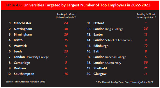 利兹大学的就业情况也不错,根据2023 年毕业生市场 High Fliers Research公布的数据,其毕业生在最受雇主们喜爱的排名中位居第6。