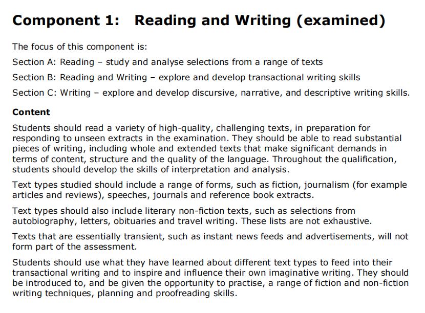 考察内容:第一部分为阅读,一篇来自Edexcel选集的第1部分的非小说类文章,另一篇是学生以前没阅读过的,回答阅读题目。第二部分是事务性写作。