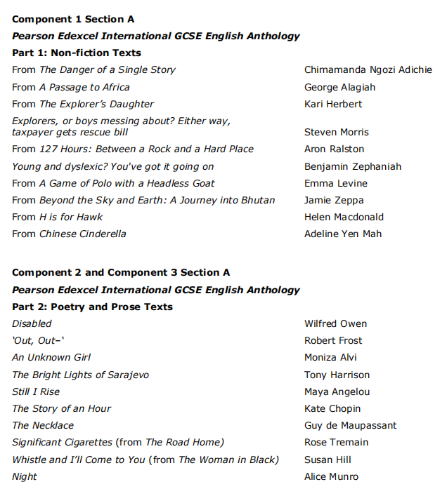 课程作业:第一部分是学生从Edexcel选集第2部分中,选取两篇诗歌或散文作分析,以及需要附上为什么选取这两篇文章的评论。第二部分是想象力写作。