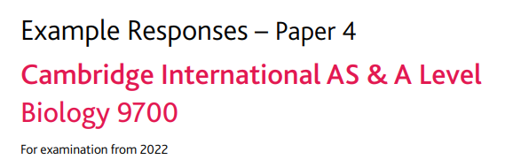2月1日,CAIE考试局在官网更新了2022年6月Alevel生物9700 Paper4&5的Example Candidate Responses (ECR)。