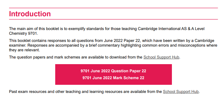 Example Candidate Responses (ECR),是剑桥考官为教授剑桥国际AS和A级化学的人提供标准示范,而展现了不同水平考生在考试时会犯的错误,并将常见的易错点标出来给予老师和学生提示。
