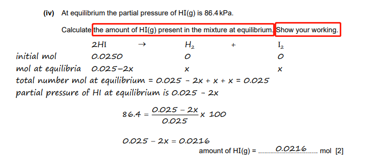 有一些同学计算了反应中消耗的HI的量,但没有按照问题的要求用这个值来计算平衡时HI的量。并且还要注意的是,计算的过程要写清楚,这样才能将分数拿完整。