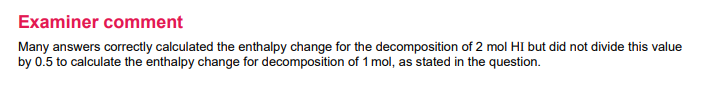 在这道题中,有很多同学算对了2 mol HI分解时的焓变,但没有按照题干的要求用这个值除以2来计算1 mol分解时的焓变,导致最后没能答对。