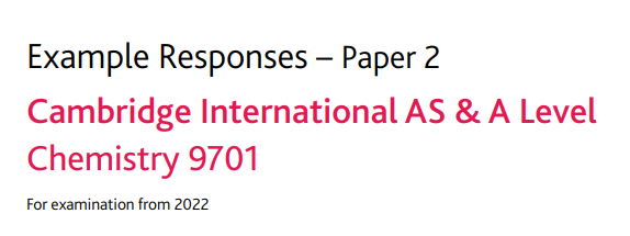 在年前我们为大家带来了AS & A-Level物理9702今年6月paper22的示例,1月19日,剑桥考试局于在官网更新了Example Candidate Responses (ECR),包含AS & A-Level 化学9701 paper2-5。
