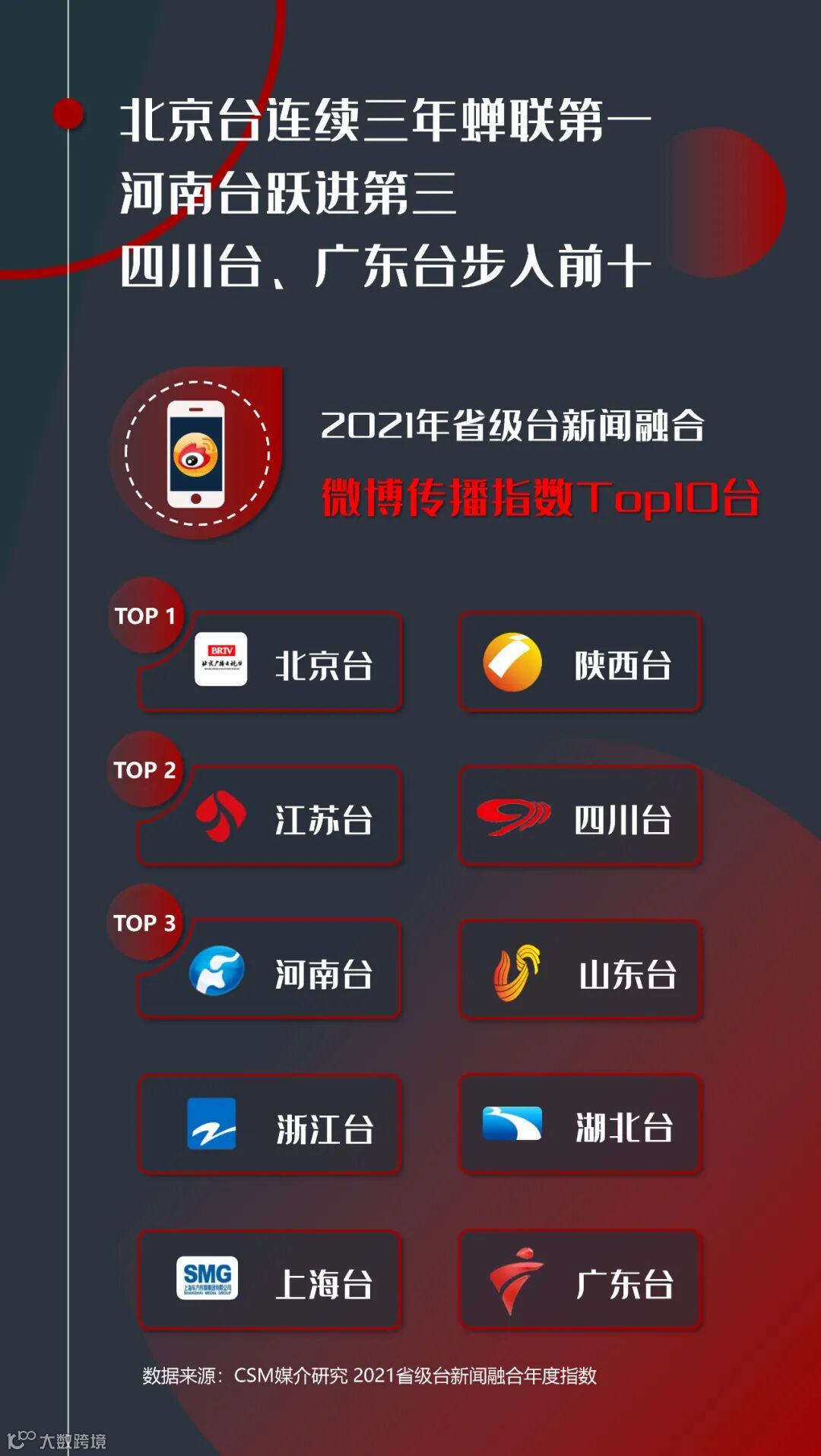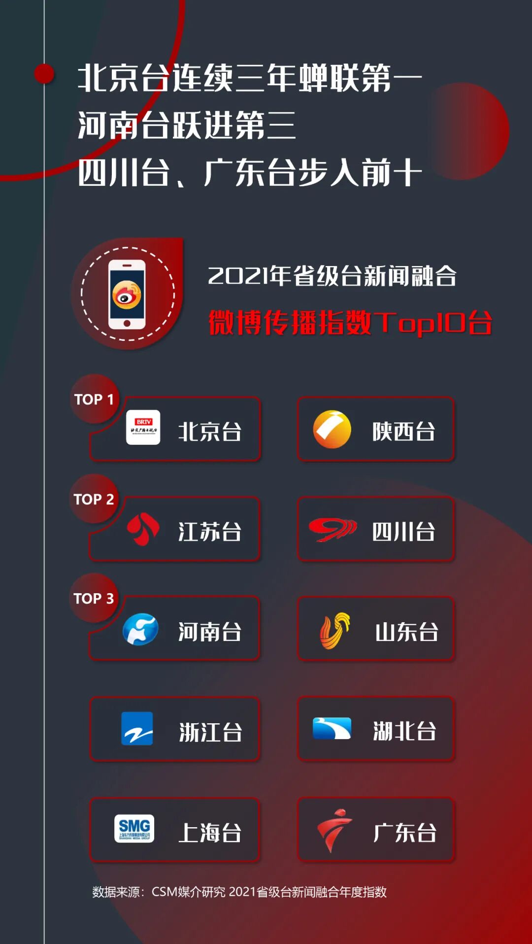 广东台、湖北台进入前三,陕西台跻身前十