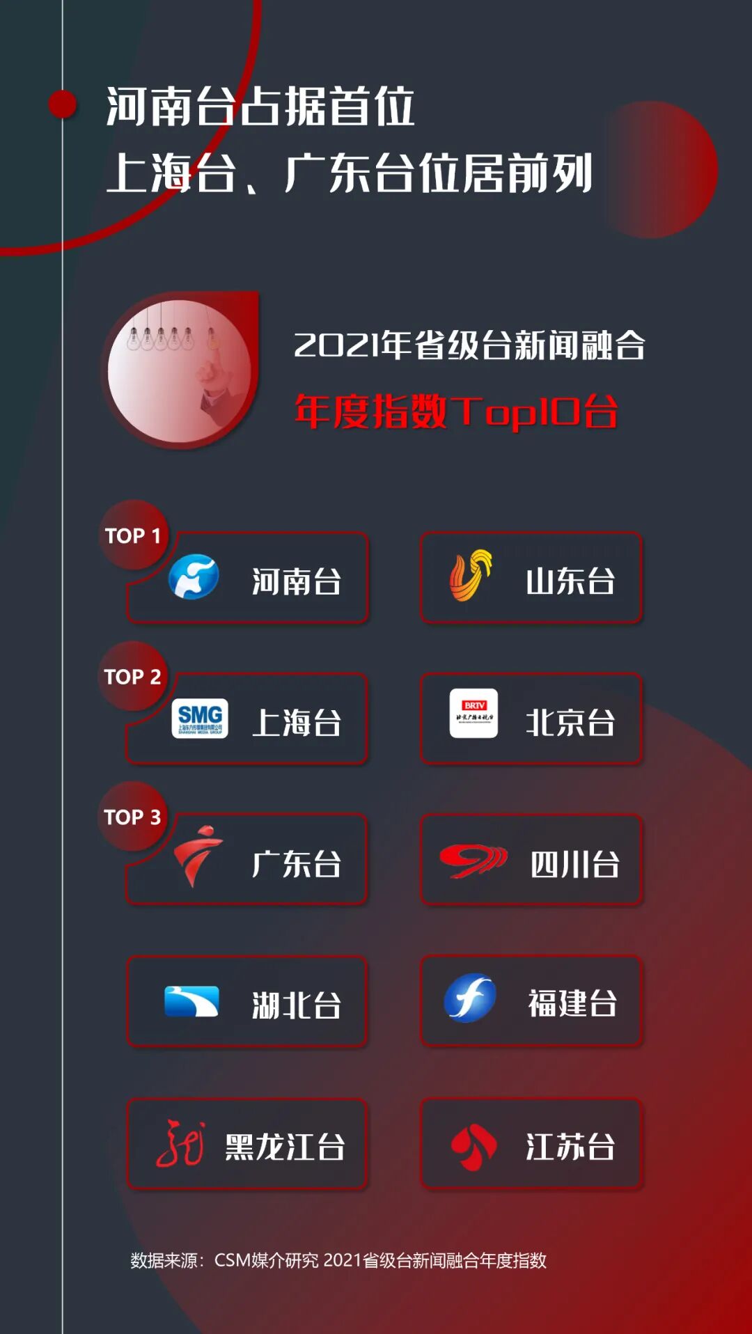 黑龙江台、湖北台跃居前五,四川台、福建台挺进前十