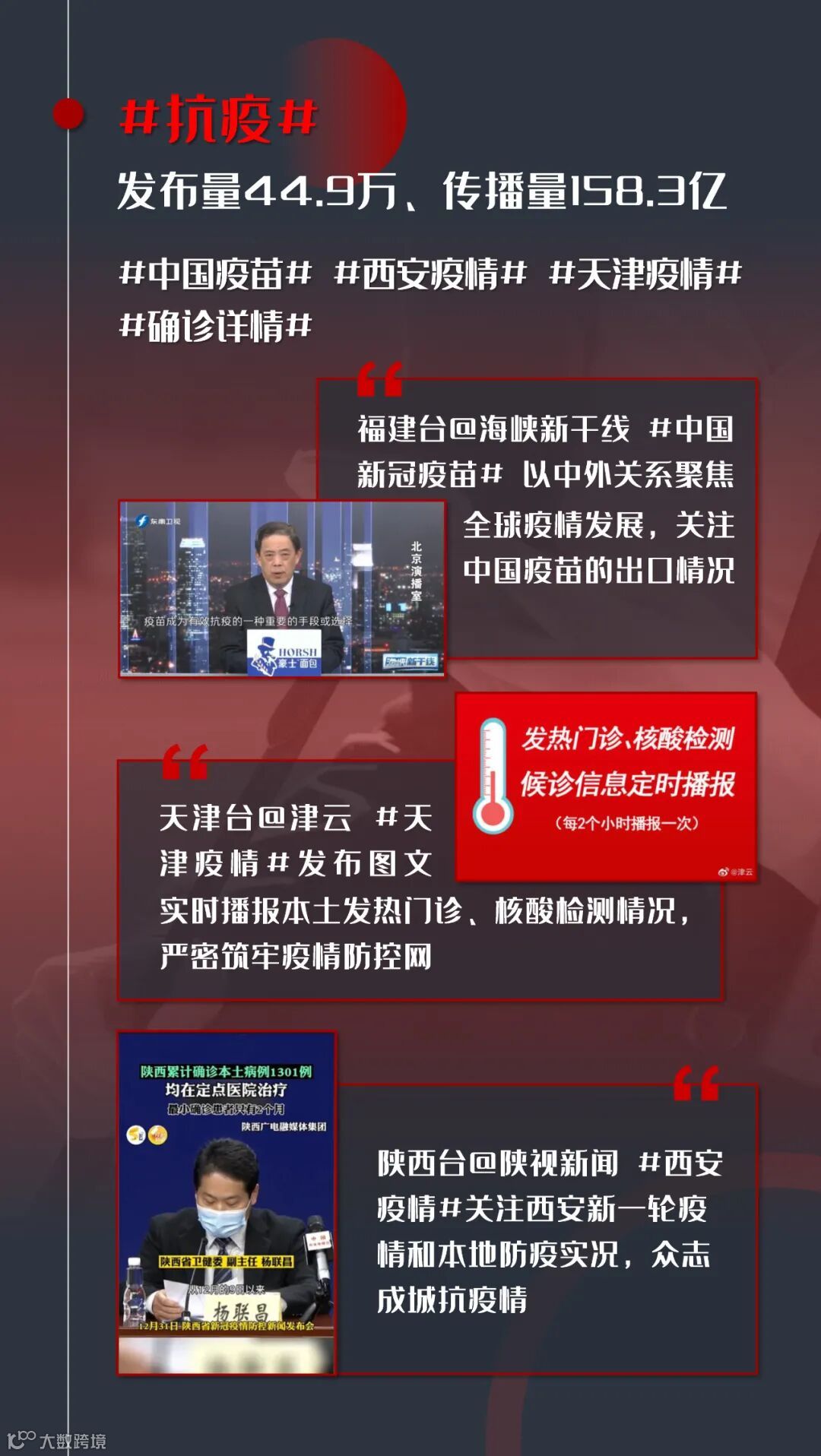 省级台地面频道新闻栏目微信账号,以更具贴近性、服务性的内容,释放出更大的传播价值。比如,黑龙江台@新闻夜航、上海台@新闻坊、辽宁台@新北方、陕西台@都市快报位居微信公众号传播量头部阵营,全年传播量均破亿。