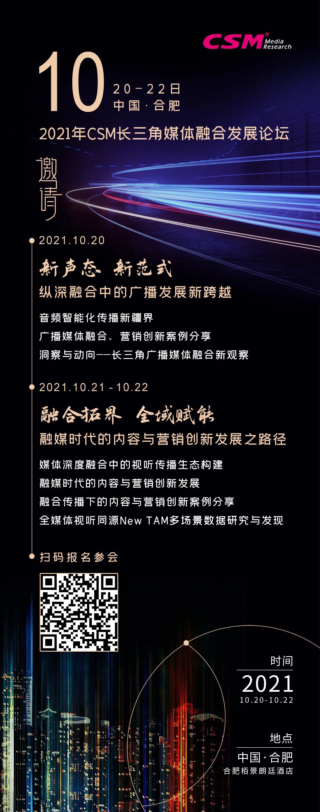 10月20-22日CSM将在安徽合肥举行2021年CSM长三角媒体融合发展论坛