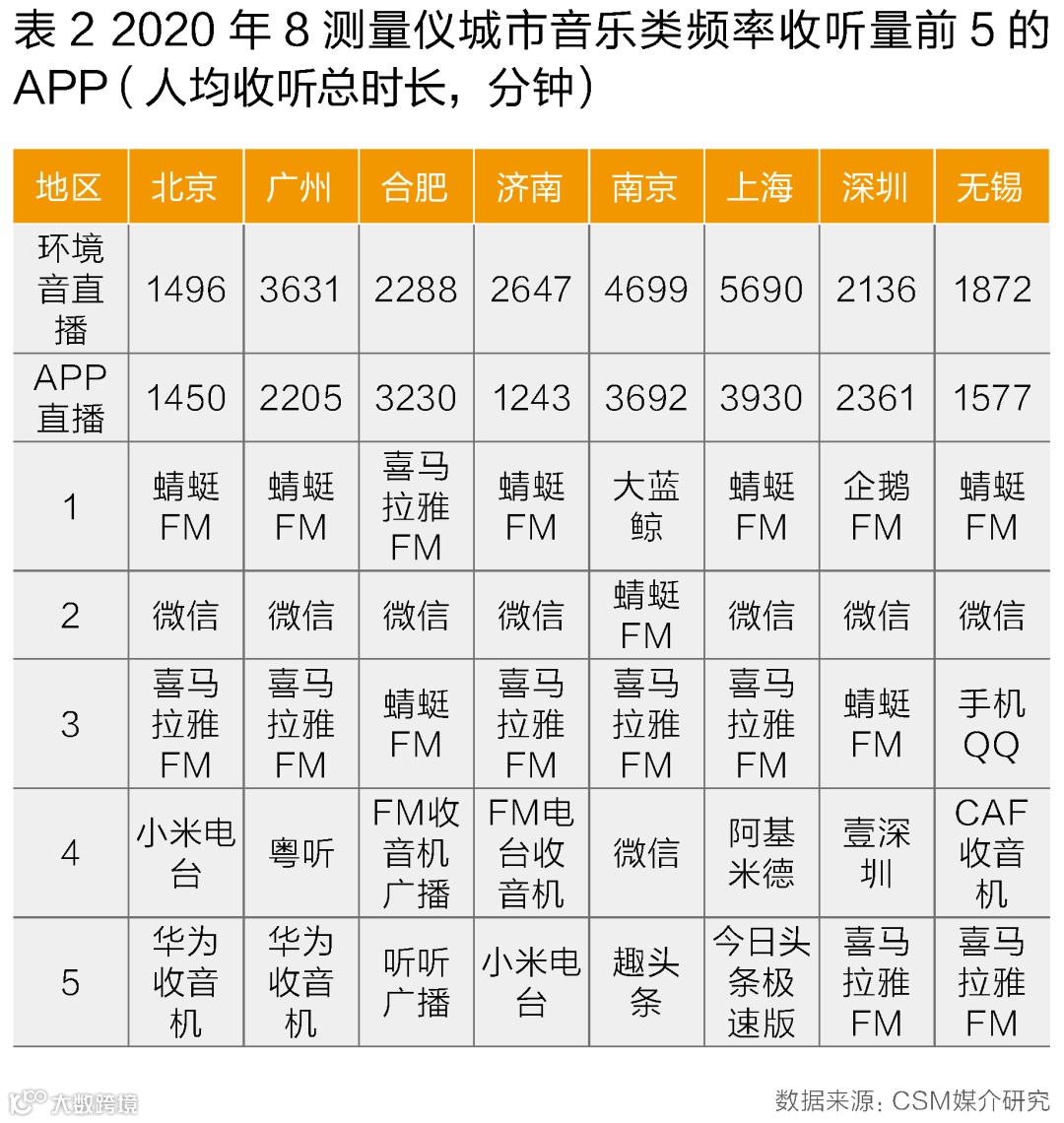 ▎蜻蜓FM、微信和喜马拉雅FM是手机端收听音乐类频率直播节目最主要的三个APP