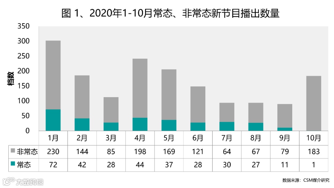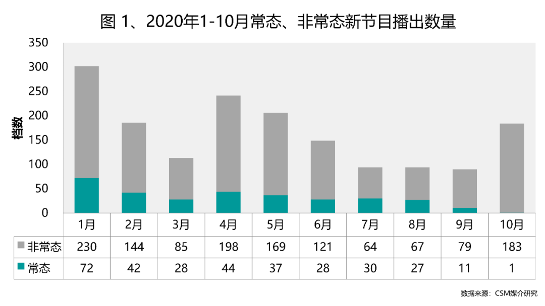 常态节目创新多见于年初,非常态新节目在节庆期间和疫情防控初见成效之际放量