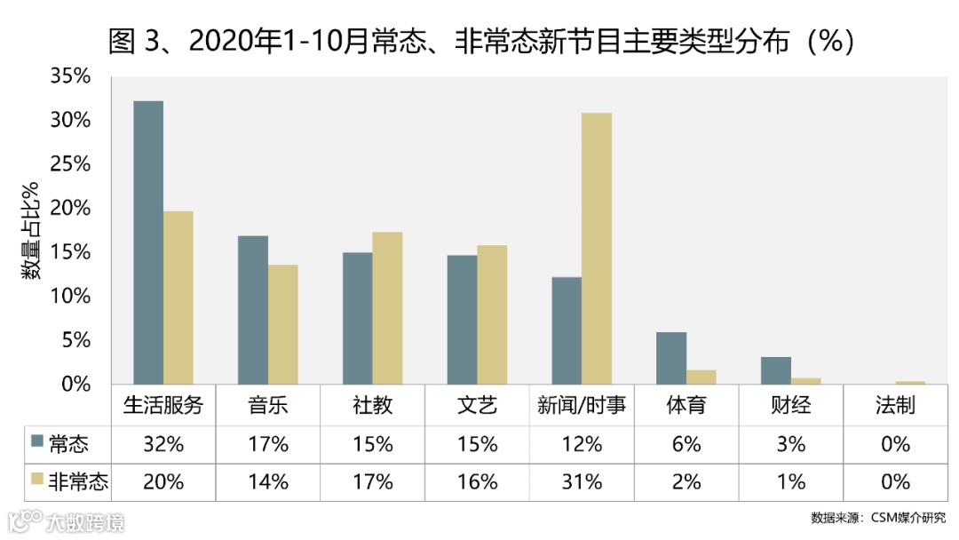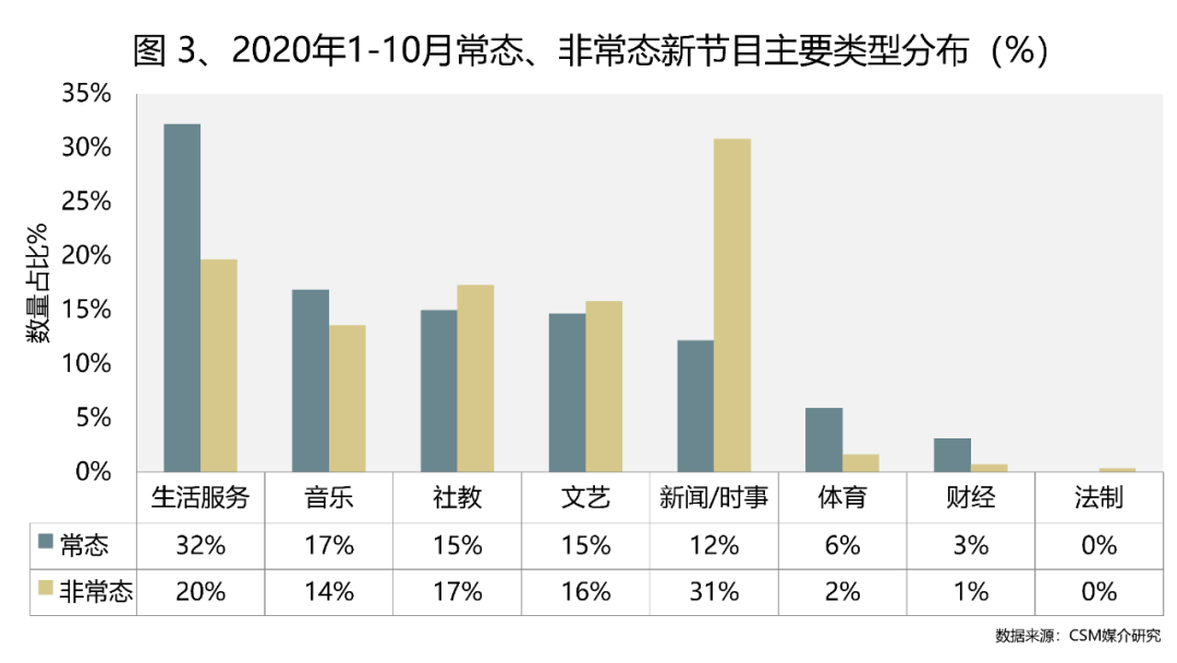 生活服务和音乐类节目创新量集中,新闻/时事类节目主导非常态节目创新