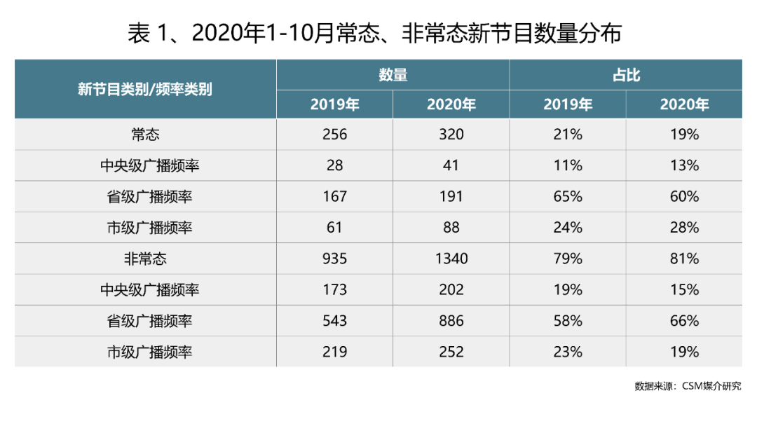 2020年暑假期间节目创新量明显高于上年同期,中央级广播频率非常时期节目创新提速