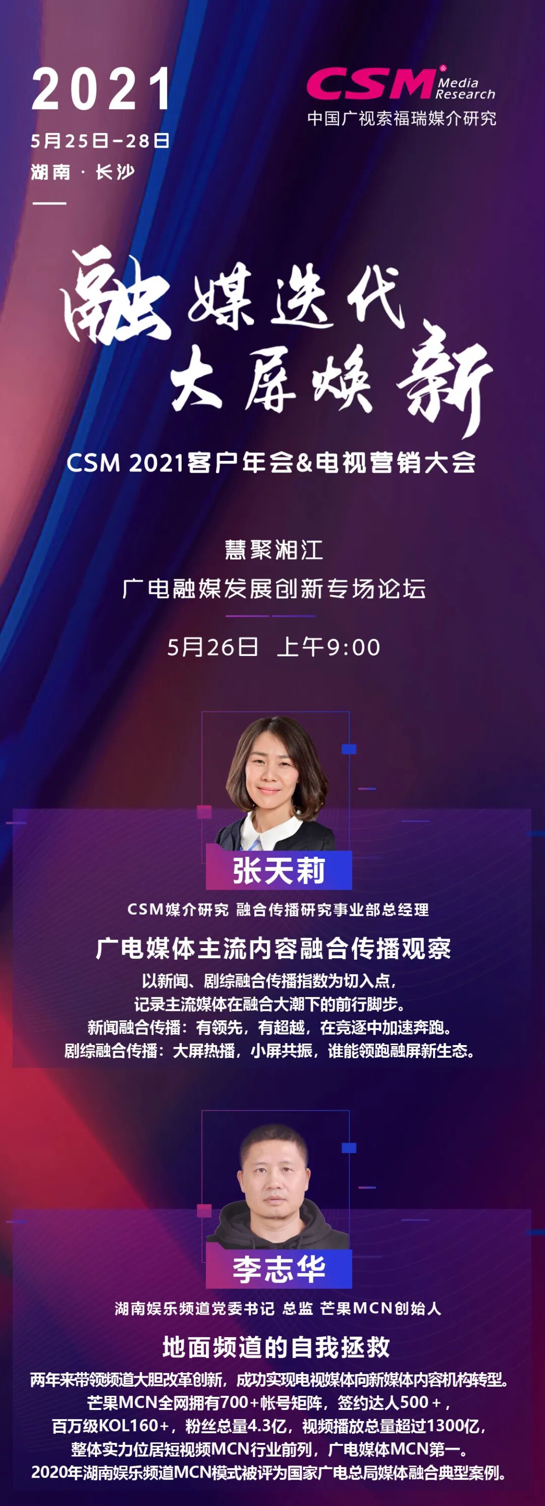 CSM 2021客户年会&电视营销大会——广电融媒发展创新专场论坛大咖揭晓!