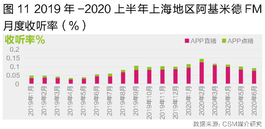 除了本地听众挖掘外,部分广电APP也通过连接各级广播电台的内容加强跨地域传播的能力。比如阿基米德FM除了在上海本地,在广州、深圳等城市也陆续监测到听众通过该APP收听当地广播直播内容的情况。