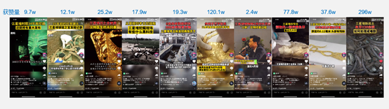 本条短视频不仅是在四川观察的三星堆系列报道中获赞最多的,也超过央视新闻账号的三星堆系列报道短视频的最高获赞量(228w)。