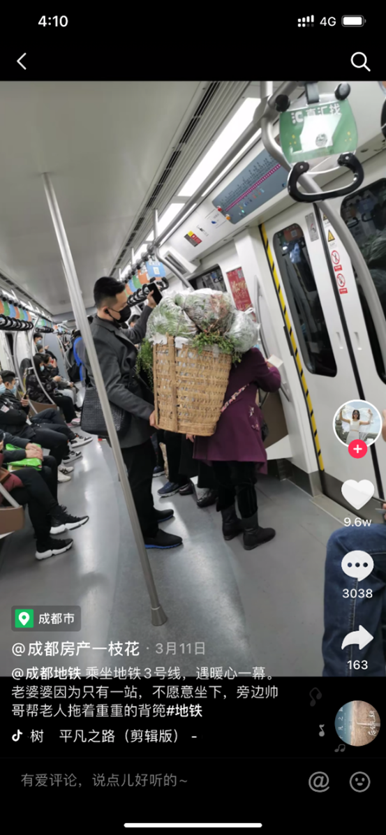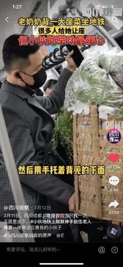 《四川观察》3月12日发布的短视频#小伙地铁上默默伸手抬住老人背篓