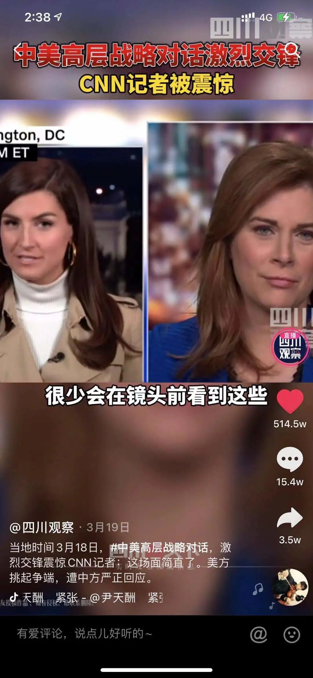 《四川观察》3月19日发布的短视频#中美高层战略对话,激烈交锋震惊CNN