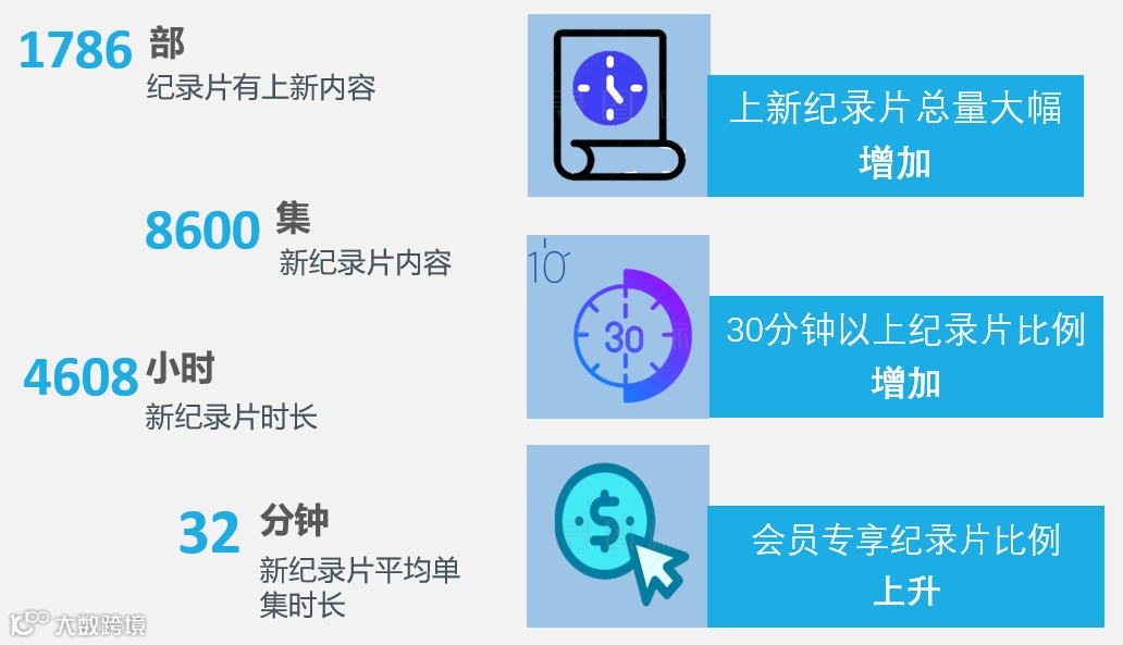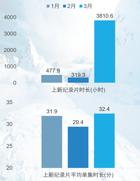 统计数据仅包含当月上线且单集时长在180秒(含)以上的纪录片内容;