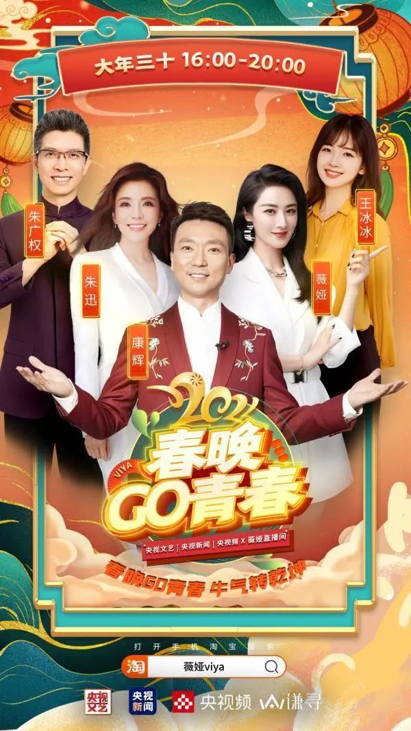 说起大IP,总台春晚无疑是关注度的“顶流”,2021牛年的春晚多了一个新的创新性预热节目《春晚GO青春》。薇娅作为《春晚GO青春》独家好物推荐官,在大年三十下午16:00到晚上20:00与央视主持人康辉、朱广权、朱迅、王冰冰一起带来春晚开始前的台前幕后最新鲜资讯,参与春晚的各路明星嘉宾也在直播间提前亮相,无缝连接春晚,解锁更多精彩!《春晚GO青春》围绕“春晚”话题,通过直播互动激发网友的消费动力和情感共鸣,一方面,总台主持人与薇娅、春晚嘉宾等人携手直播带货,花式“售卖好物”,只为“以礼福人”,节目更有“一分钱秒杀福袋”环节,幸运观众以一分钱抢购到精品“年货福袋”;另一方面,在带货好物的同时,深受广大年轻观众喜爱的总台记者王冰冰化身“春晚特派员”,带领网友打卡春晚嘉宾化妆间、休息室,为大家揭秘春晚主持人口红色号、嘉宾同款单品、嘉宾造型等春晚热门内容。值得一提的是,《春晚GO青春》厚植乡情,为家乡农副产品代言,共同助力脱贫攻坚。