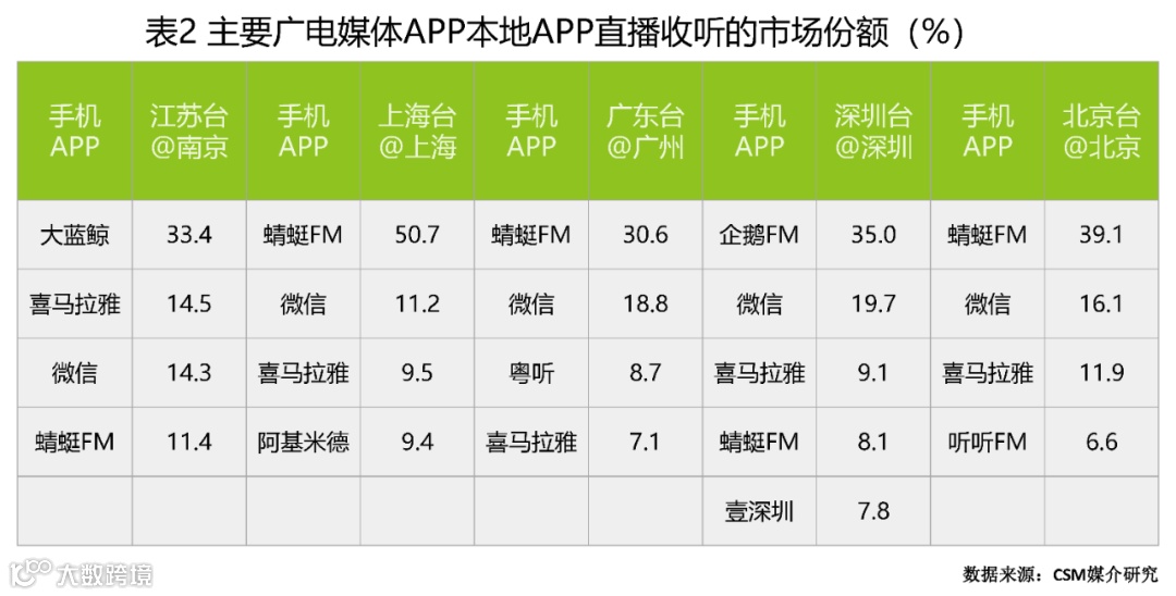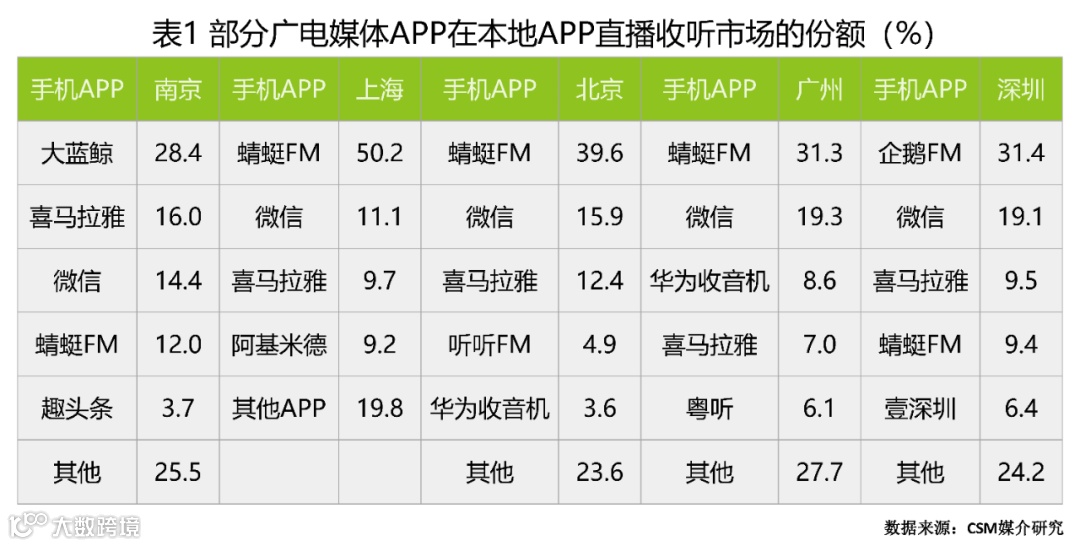 4、不同地区的多个频率APP直播收听贡献度超过一半