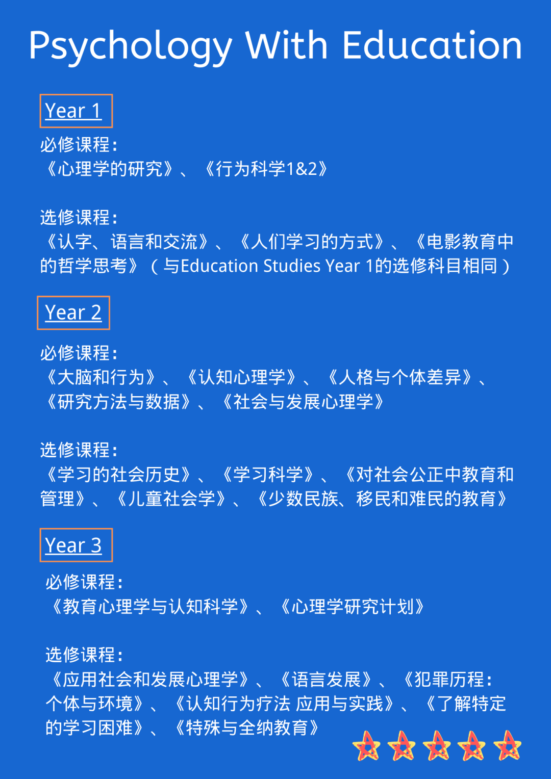 A-Level:AAA(至少从心理,社会学,数学或生物选1门学习)