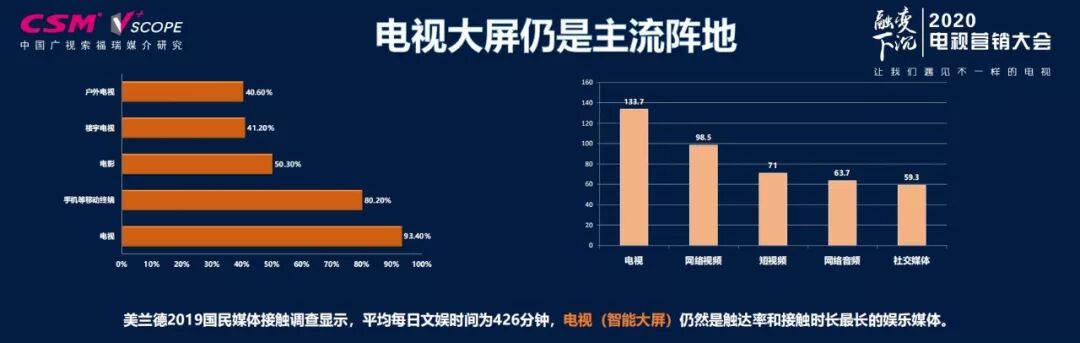 电视大屏是营销主战场,年轻观众随着大屏的智能化、高清化、个性化出现了回归的模式,2019年年底IPTV用户已经达到2.94亿。