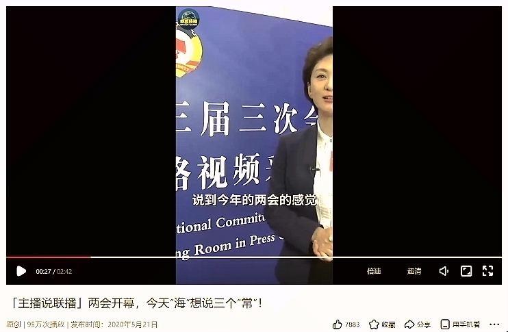 专业对口,主持人海霞实力代言,从全国政协委员角度出发,介绍“两会”期间的见、闻、感、悟,发布在好看视频平台的《两会开幕,今天 ‘海’想说三个‘常’!》,播放量达92万。