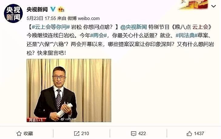 @央视新闻、@山东广播电视台等央、省级媒体相继推出云上会、云对话等栏目,直播连线委员、专家,在线阐释提案要义、解答相关困惑,强化网民参与感。