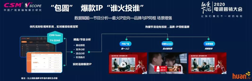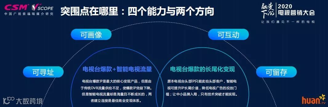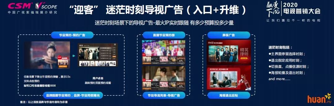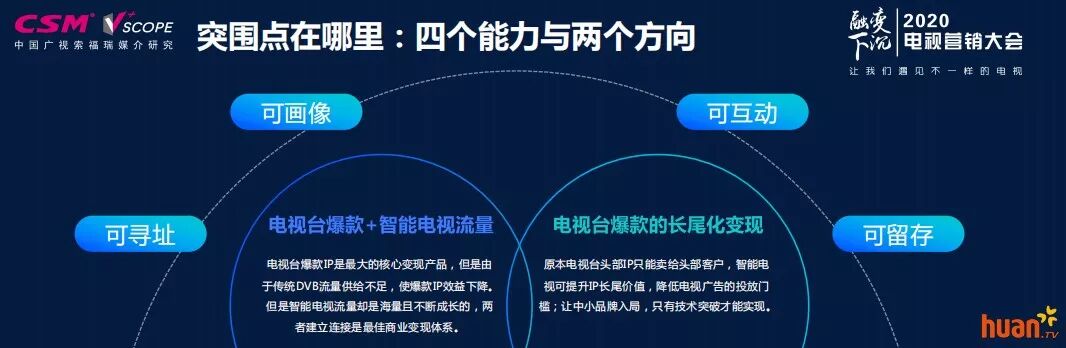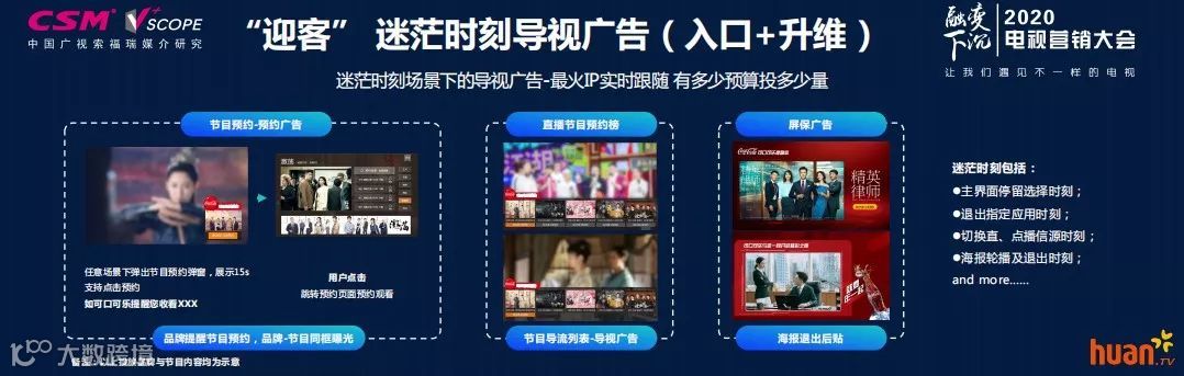 这四个产品其实是解决广告主的痛点,这个痛点就是我为什么用大餐的模式?能不能用自助餐的模式进行电视头部IP消化?一定得花大钱才能跟头部IP关联在一起吗?能不能通过一些小钱也能使局部用户进行点向化的投放?
