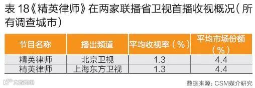 48集都市律政剧《精英律师》讲述了一群法律从业者,为守护公平正义、为职业理想奋斗的故事。该剧由新丽电视文化出品,刘进执导,靳东、蓝盈莹等主演,于2019年12月20日登陆北京卫视、上海东方卫视。截止12月31日,该剧前20集剧两家联播总收视率2.6%,市场份额为8.8%。该剧前20集在59城市7天时移收视率0.79%,相当于59城市首播收视率的27%。