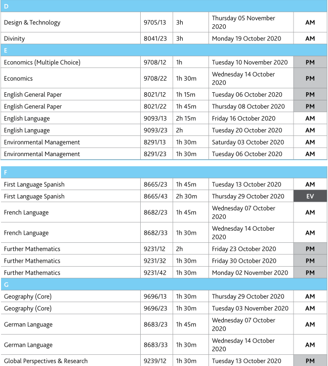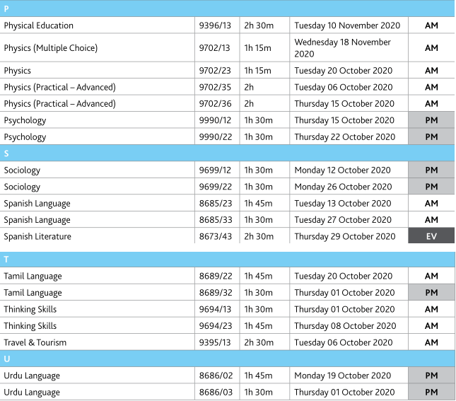 CAIE2020年秋季考试的时间表已经出来了,AS考试时间安排如下: