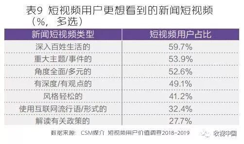 用户对新闻短视频的价值具有清晰认知。他们更想看到“深入生活”“反映重大主题”“角度全面”“有观点性”的新闻内容。10-19岁新闻短视频用户倾向注重新闻形式,更想看到“使用网络流行语、流行形式”“风格轻松”的新闻内容。20-49岁用户更注重新闻综合质量,想看“深入生活”“角度全面,展现多方声音”“深度报道、有观点”的新闻短视频。