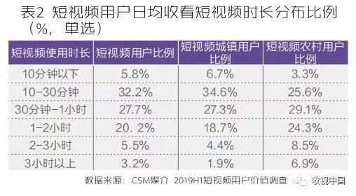从用户的地域分布来看,“下沉市场”是短视频行业的新增量。相比城镇用户,农村短视频用户使用时间更长,日均使用短视频时长30分钟及以上的用户占比达68.8%,显著高于城镇用户的52.3%。