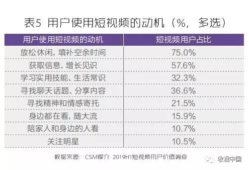 各大短视频平台2019年持续加码,基于用户需求加速角力。研究发现:用户对各大短视频平台评价形成差异化:抖音“创新活力”,微视“高端大气”,西瓜视频“精良专业”,梨视频“有内涵”,好看视频“有用,值得信赖”。