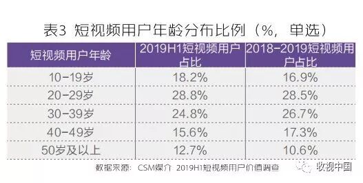 短视频用户规模保持增势,市场空间仍在扩大。从年龄分布看,主力用户聚集在80后、90后,整体呈现年轻态;同时,用户年龄不断向两边拓展。10—19岁用户、50及以上的短视频用户比例有所上升。