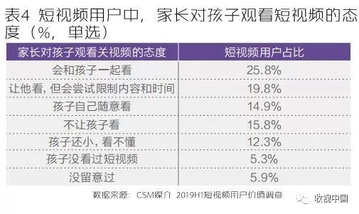 除个人使用外,短视频更多向家庭生活场景渗透。50%的用户家里有18岁及以下孩子,在这部分家长当中,有六成家长不反对孩子看短视频,包括陪伴观看、限制观看内容和时间等各种方式。不反对孩子观看短视频的家长表示每天10—30分钟是可接受时长,短视频不仅成为孩子认识世界的窗口,也是父母陪伴孩子、教育孩子的重要媒介。面向少儿的寓教于乐类内容同时收割家长、儿童,是短视频流量可扩容方向。