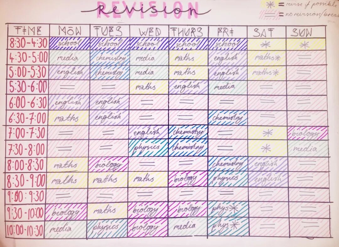 制作完个性化的日程表后,就要严格按照日程表执行,并且在每晚入睡前检查自己当天的完成情况,给自己评分,借此来调整个性化的日程表直到形成最适合自己的日程表。长期执行,不仅时刻保证自己在高效学习的状态,还时刻检测自己的学习状态。