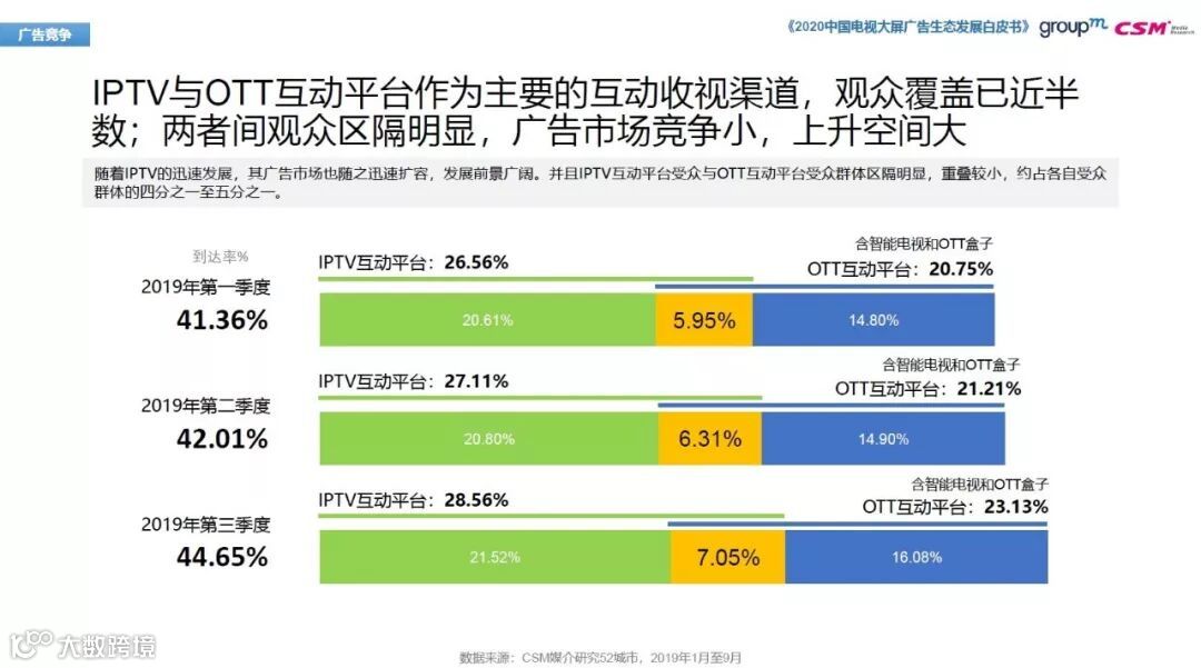 OTT和IPTV互动平台在电视大屏收视市场份额分别超过7%
