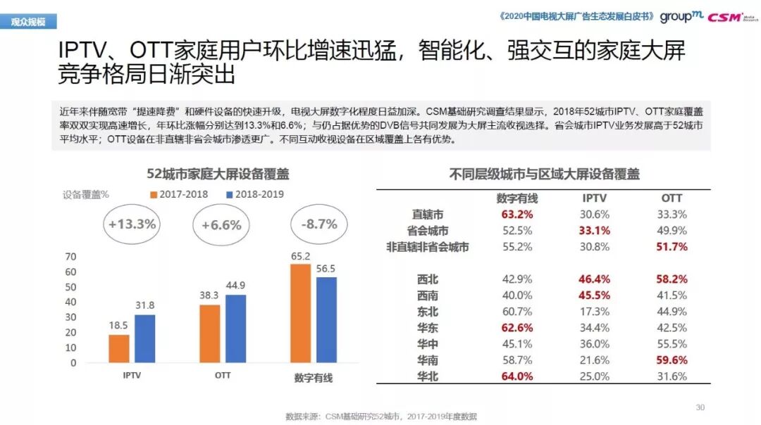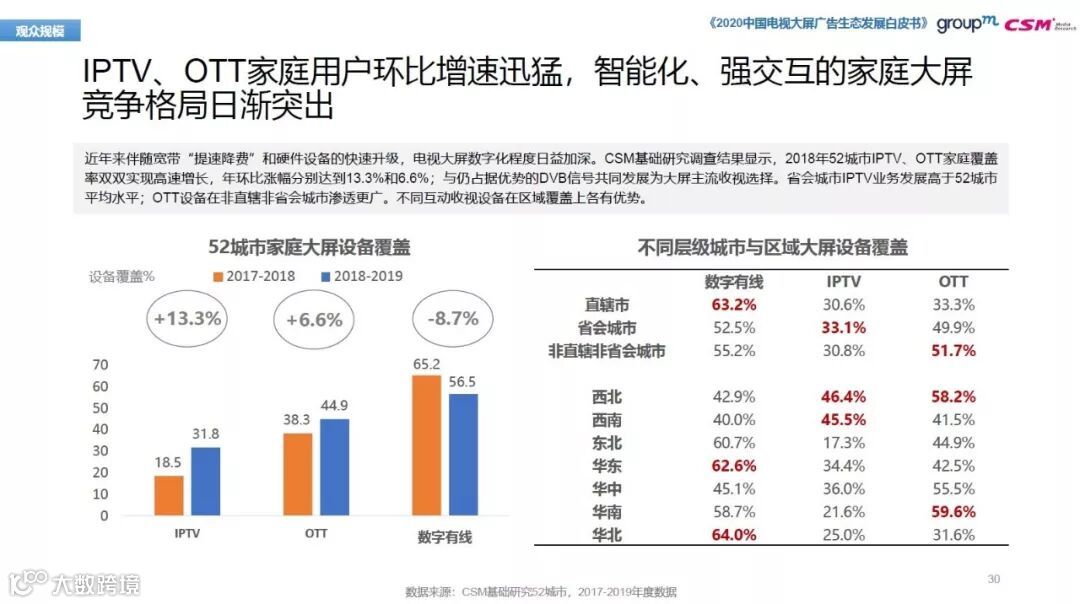 互动平台三分天下,智能电视及OTT盒子覆盖变广,IPTV各地区发展迅速:电视大屏已成直播与点播的混合载体